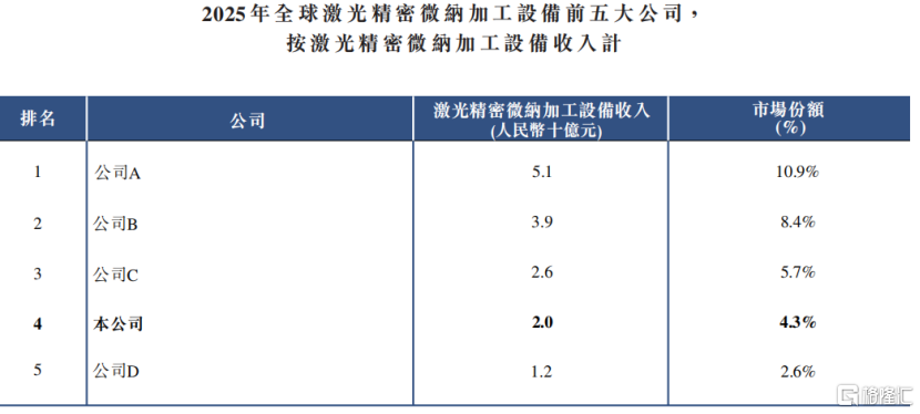 2025年全球激光精密微纳加工设备前五大公司,来源:招股书