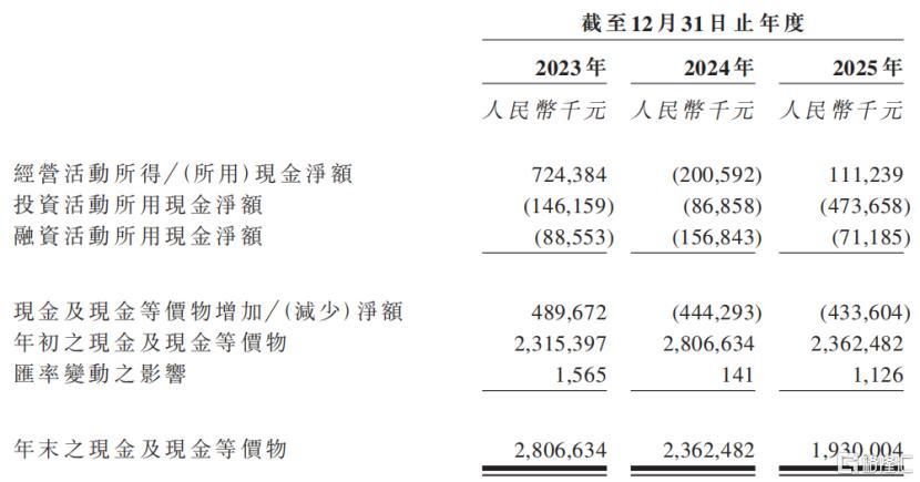 截至2025年年底,公司账上的现金及现金等价物约19.3亿元,较2023年末的28亿元大幅下降。