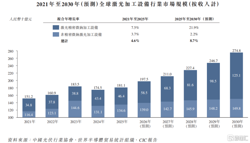 预计到2030年,以收入计,全球激光加工设备行业的市场规模预计将达到2748.4亿元。