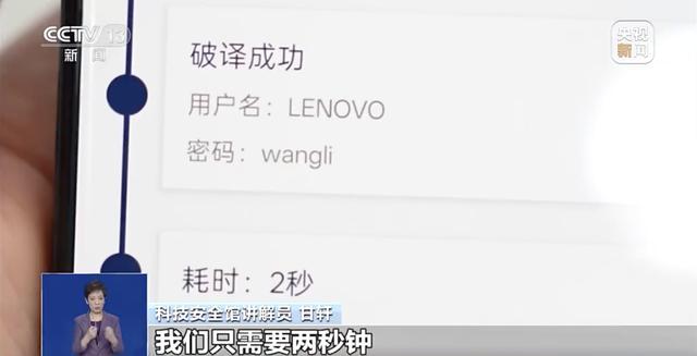 专家表示,如果办公电脑、银行账号等使用简单弱口令密码,很可能被别有用心的人在几秒钟内“非接触式破解”,直接远程突破防线。
